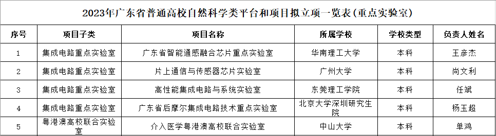 近日,2023年度广东省教育厅科研平台和项目及省教育科学规划课题(高等教育专项)拟立项名单公示,我院“高性能集成电路与系统重点实验室”获评广东省高校重点实验室。