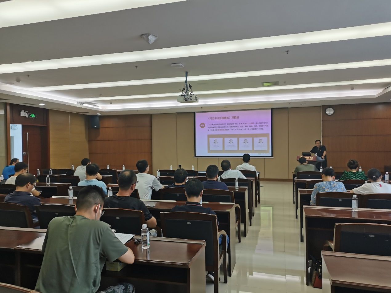 在学术会议中心306开展学习贯彻《习近平谈治国理政》专题宣讲会,马克思主义学院形势与政策教研室主任肖凤良副教授以“马克思主义中国化时代化最新成果——学习《习近平谈治国理政》第四卷”为题,为全院教职工及学生代表进行宣讲授课。学院党委书记、执行院长任斌教授主持。