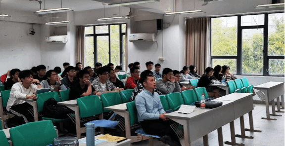 紧接着任斌耐心的在黑板上为同学们们演算有关半导体的基础知识,并以此为出发点联系到半导体产业链的实际应用,分析了目前在半导体领域我国与国外存在的客观技术差距,例如晶圆制备工艺差距大、制造工艺精度低等。任斌还为同学们介绍了东莞的集成电路产业,如天域半导体、安世半导体、合泰公司等充满活力的半导体企业以及东莞日趋完备的半导体产业链。最后任斌讲到:“我国的半导体产业发展任重而道远,未来是属于你们的未来,是属于青年一代人才的未来。”