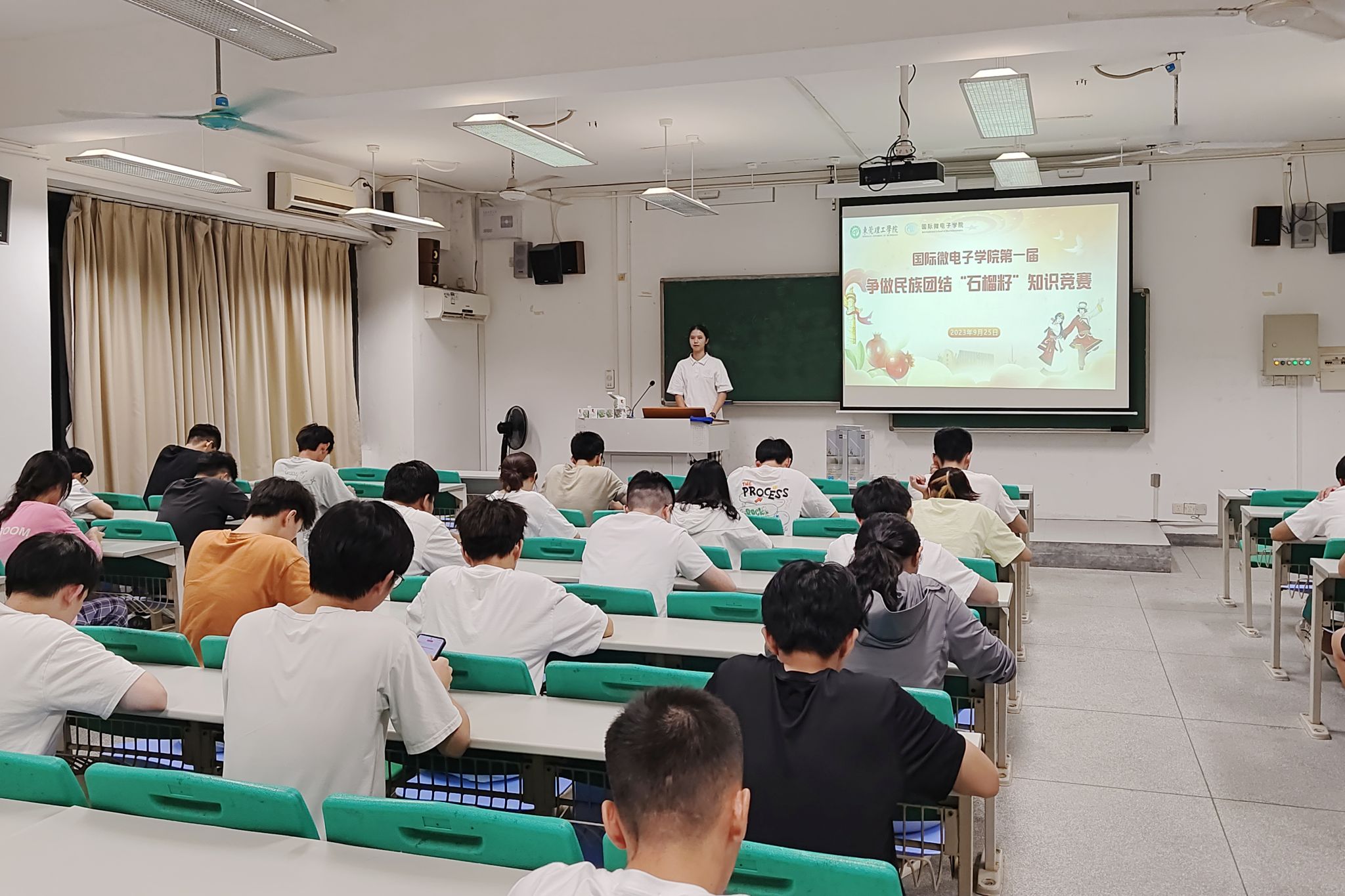 第一届争做民族团结“石榴籽”知识竞赛在6E-202教室举行,来自学院不同民族的56名同学参加了本次比赛。