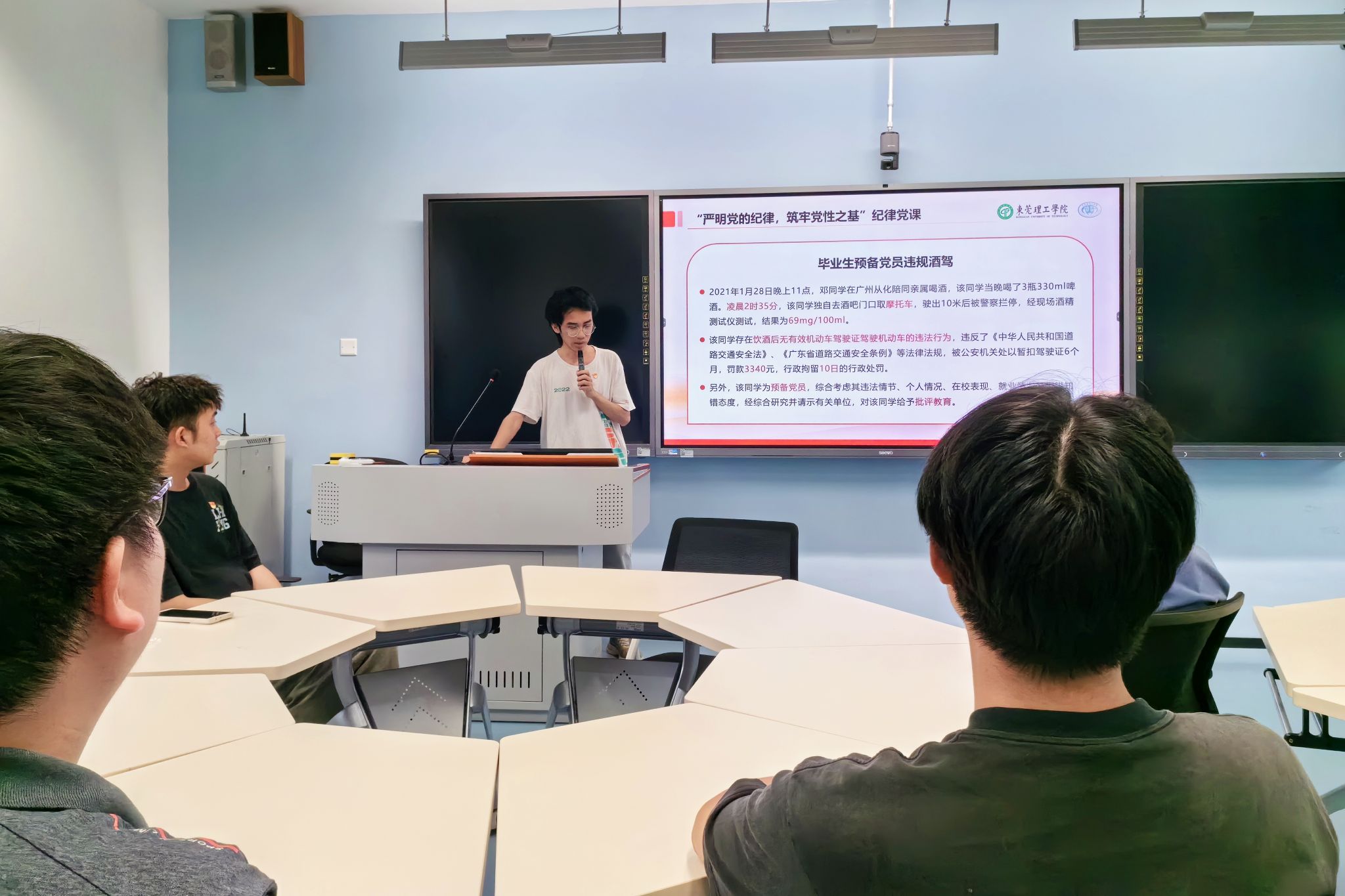 电子学生第二党支部开展“严明党的纪律,筑牢党性之基”纪律党课,支部书记贾彬主讲,支部全体党员参加。