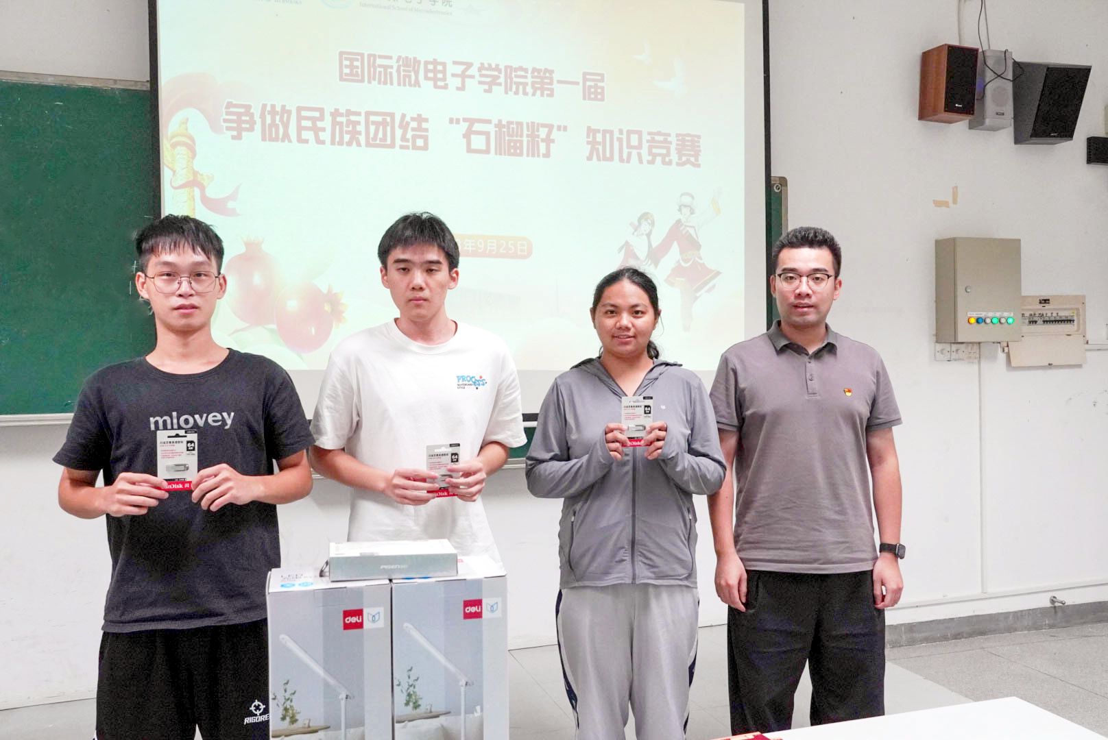 辅导员贾彬老师为获奖选手颁奖,并表示,本次知识竞赛拓展了同学们对党的民族理论与政策的认识,增强了同学们的民族团结意识。希望同学们能携手成长,共同为实现中华民族伟大复兴的中国梦而团结奋斗。
