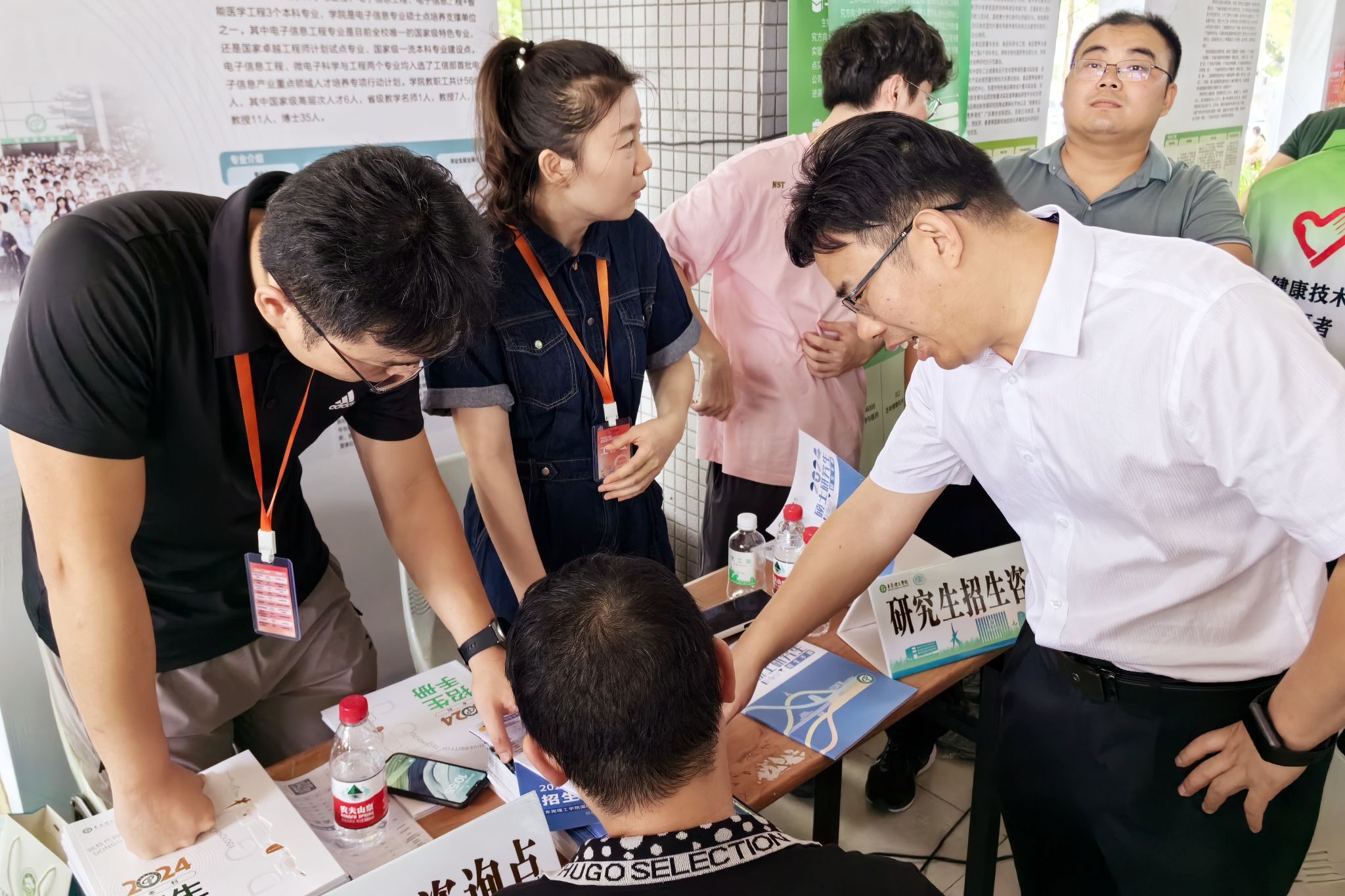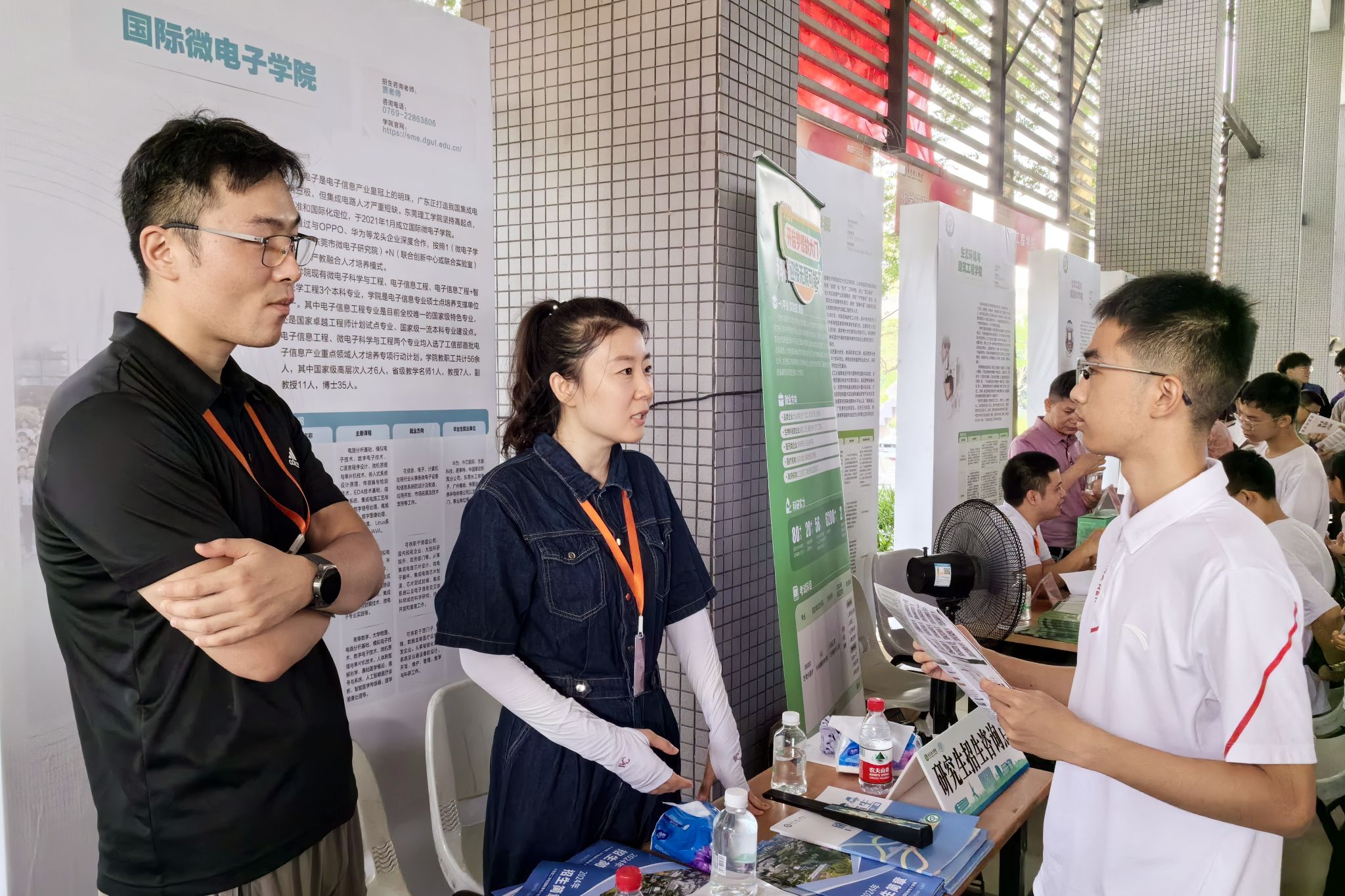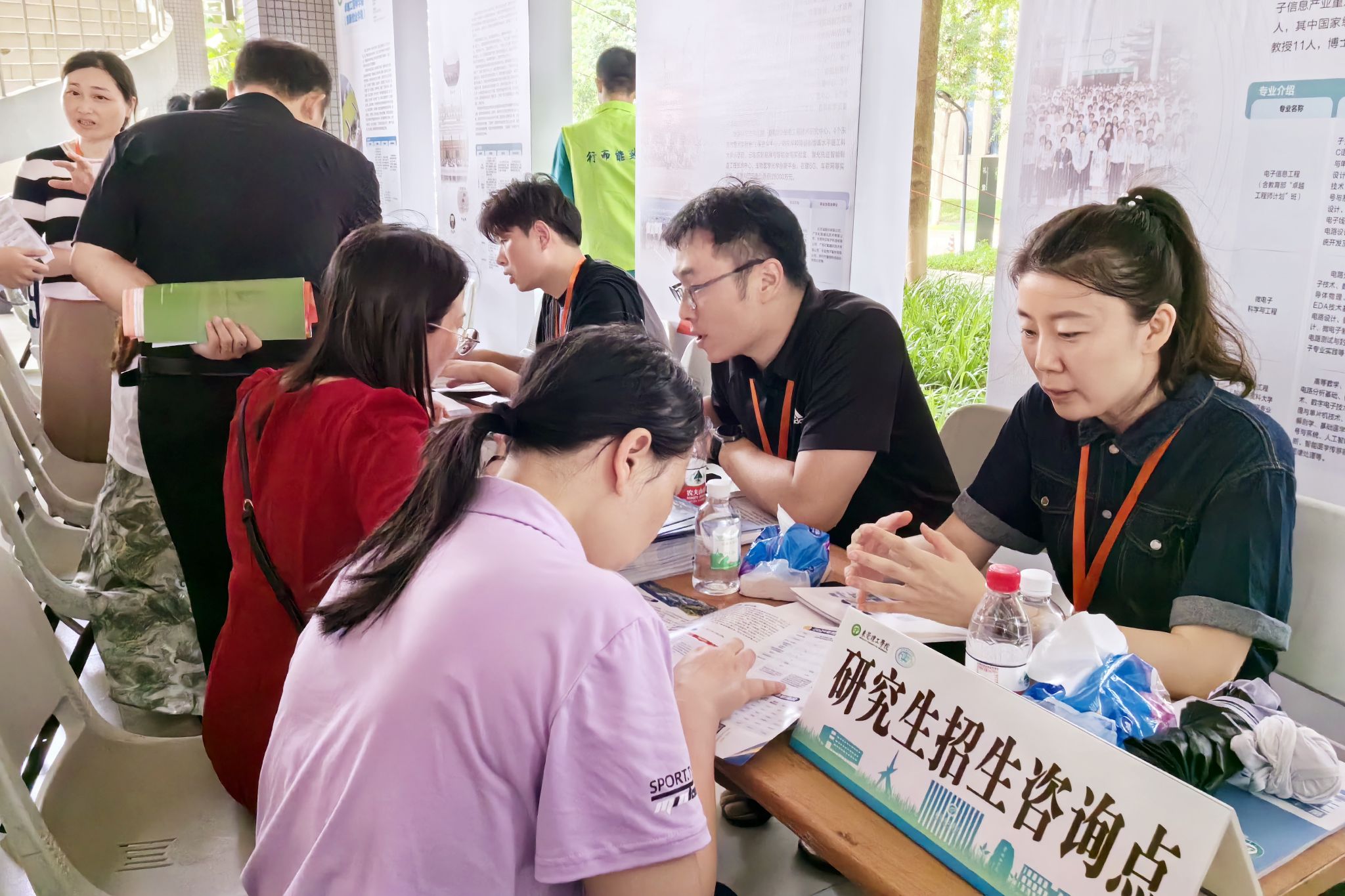 招生情况的考生和家长络绎不绝,学院领导和程凯扬老师、逯瑶老师在现场值守并答疑解惑,面对考生和家长的种种疑问,他们总是不厌其烦,耐心细致地讲解我院的招生政策和学科专业。