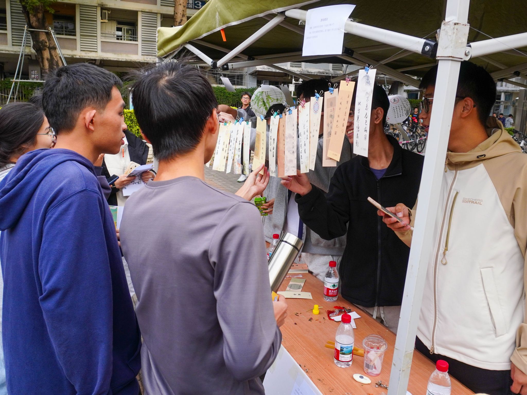 活动采用集章激励机制,同学们完成各摊位指定活动即可获得印章,集齐三个及以上印章便能参与抽奖,现场参与热情高涨。