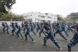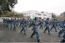 军体拳的训练场上,同样是一片热火朝天的景象。军体拳训练更注重动作的连贯性与规范性,冲拳、踢腿、格挡、摆拳,动作刚劲有力,行云流水。少年们列队站定,出招整齐划一,拳风呼啸间,尽显青春锋芒。从最初的稍显生疏,到后来的渐入佳境、连贯流畅,看似简单的动作,背后是无数次的重复与打磨。军体拳,不仅锤炼了少年的体魄,更在一招一式中,铸牢坚韧不拔的意志。