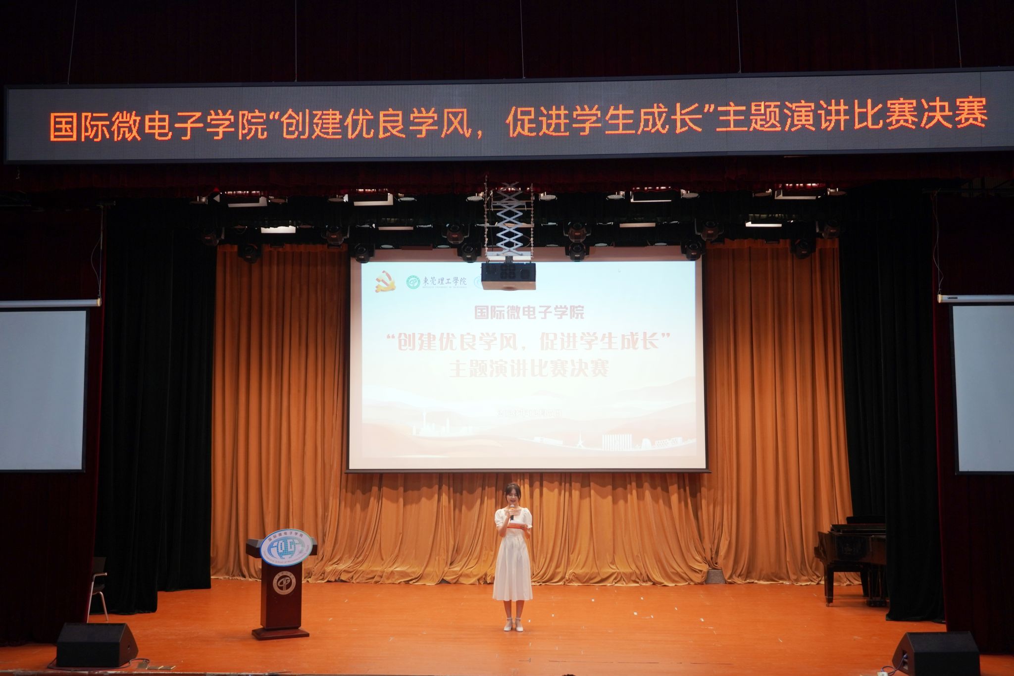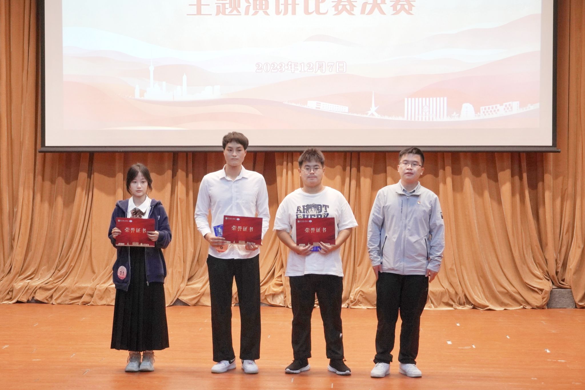 于2023年12月7日晚在学生活动中心小剧场举办“创建优良学风,促进学生成长”主题演讲比赛决赛。