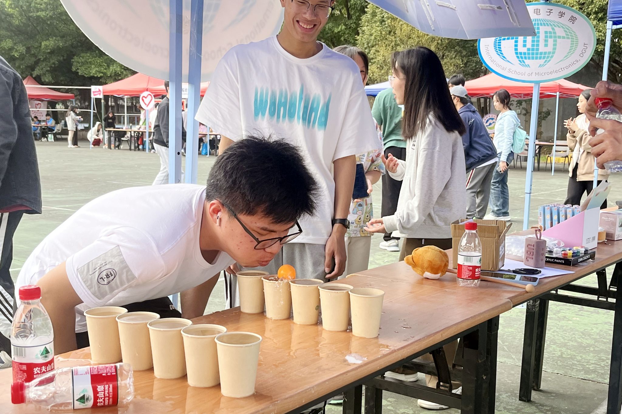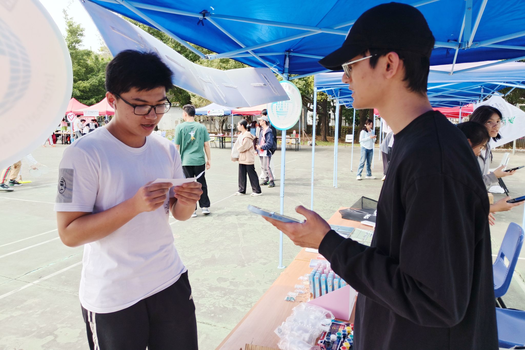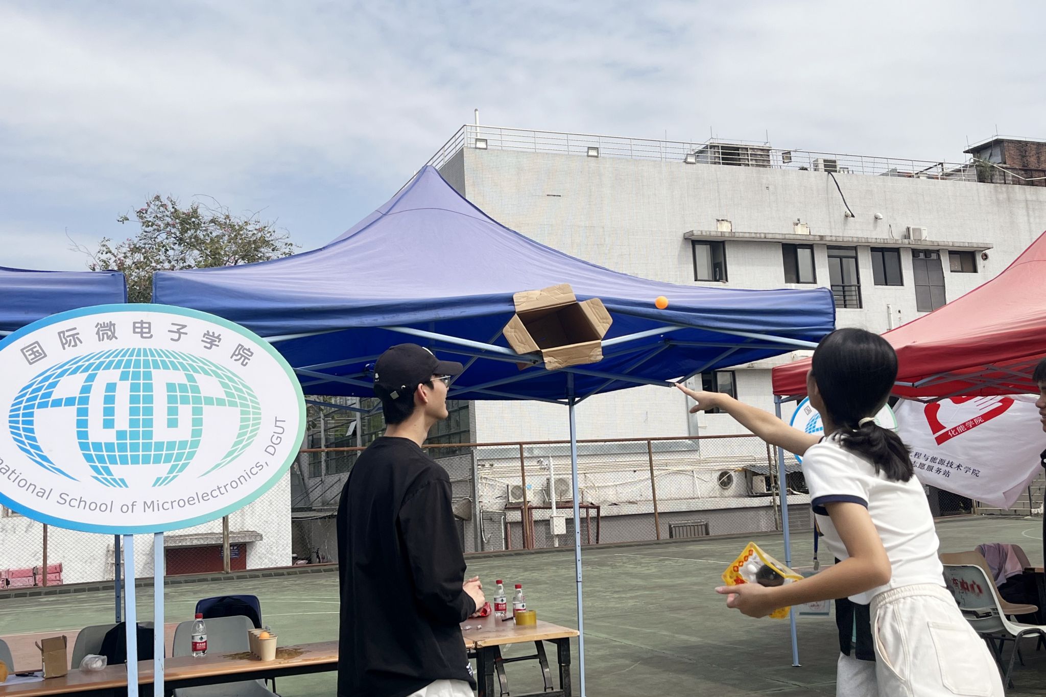 在篮球场开展“行无私志愿,展青春风采”志愿风采展活动。