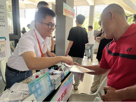 为提供更为优质的咨询解答服务,学院在礼堂门口设置本科招生咨询点和研究生招生咨询点,利用精心设计的系列展板、图文并茂的宣传手册,以全方位、多角度的呈现方式,将学院的办学特色、育人成果和发展规划生动地展现在考生与家长面前。