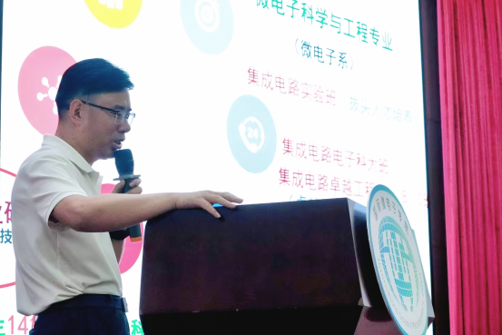 在学院见面会上,学院党委书记、执行院长任斌为全体新生带来了一堂精彩深刻的 “开学第一课”。他围绕学院人才培养体系、科研平台建设、学科专业特色及师资队伍实力等核心维度,全面细致地介绍了学院基本情况,让新生对即将开启学习生活的 “新家” 有了更系统、更深入的认知。同时,任书记向 2025 级新生致以热烈欢迎,并提出殷切寄语:希望同学们坚守理想初心、摒弃浮躁虚名、深耕专业领域、探索科学真知、勇攀卓越高峰,传承一代代微电人艰苦奋斗、励志图强的优良精神。