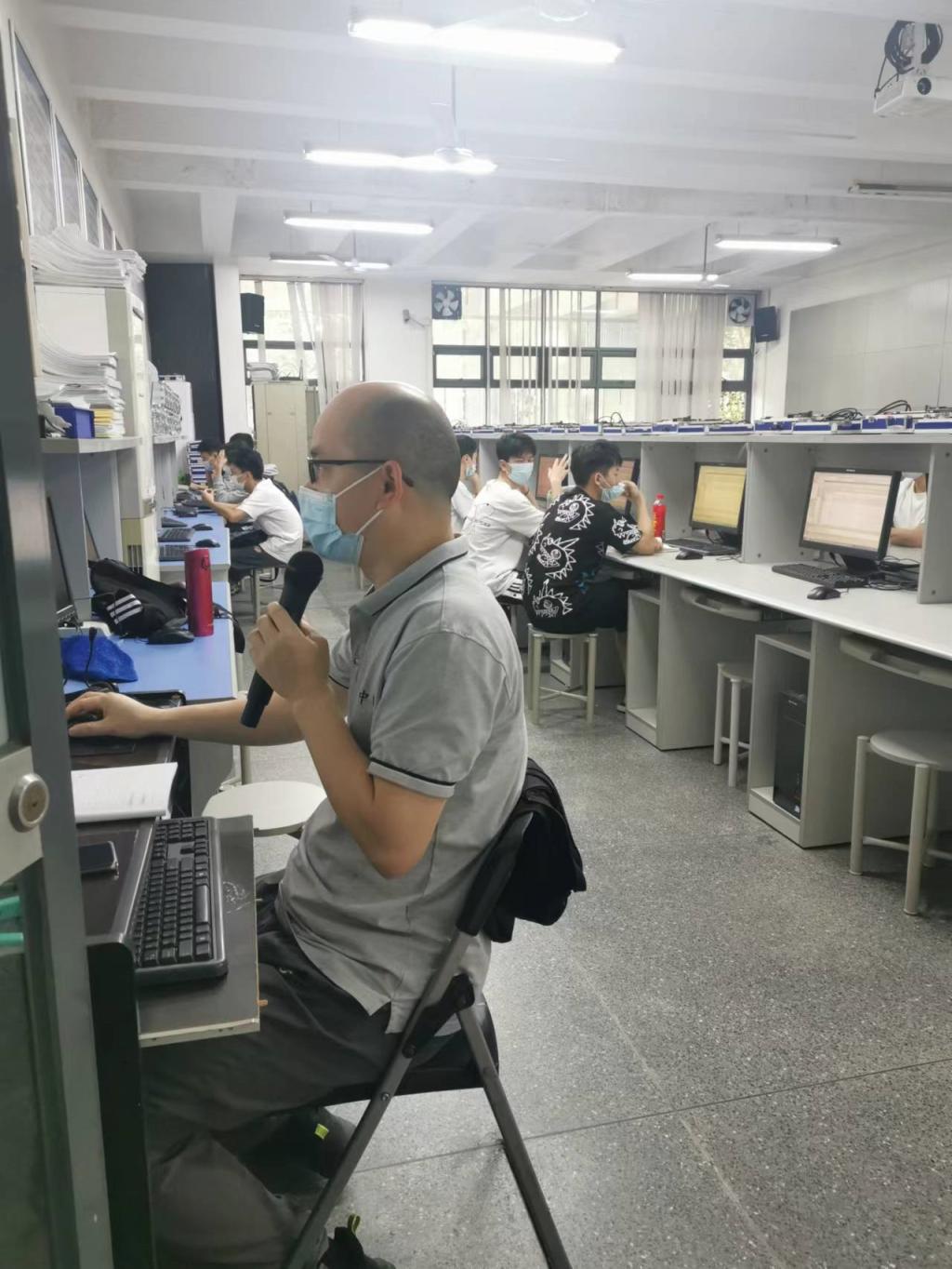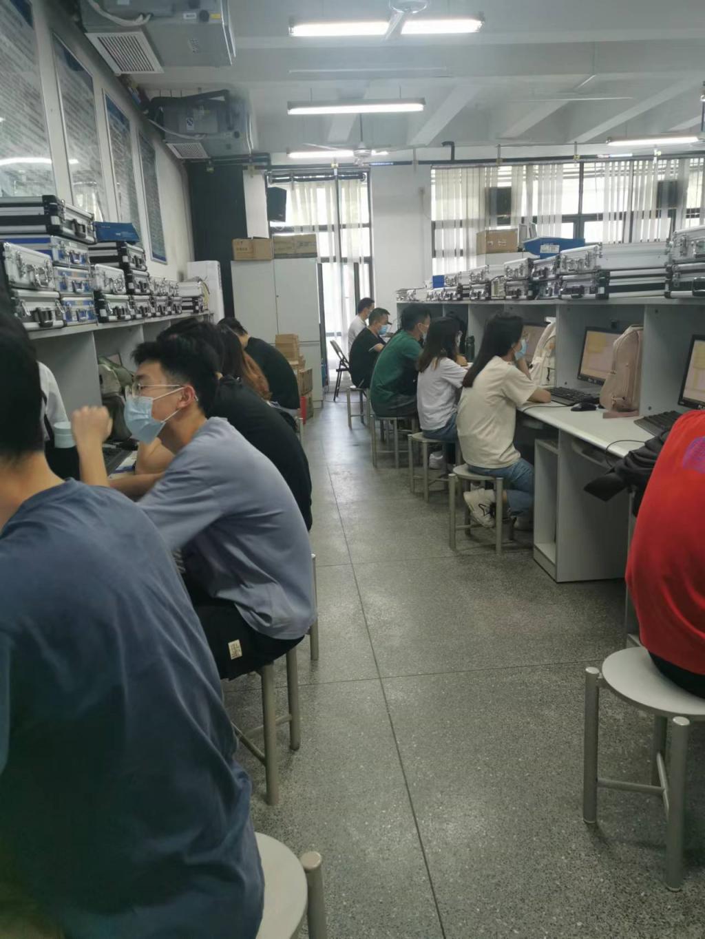 2022年5月17号早上,本学期线下上课第一天,天使动漫 卢贵主副院长带领微电子系与电子系主任对开学第一次线下教学进行了考察,授课教师很早到位,一切上课工作都准备就绪。老师和同学们都佩戴口罩,做好了防疫措施。线下线上混合教学秩序良好,尽管6c405电脑显示屏黑屏,授课老师结合板书依然正常授课。